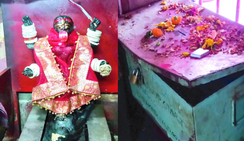 মন্দির সেবায়েতের ভাষ্যমতে, সকালে তিনি পূজার জন্য মন্দিরের দরজা খোলার পর বিষয়টি দেখতে পারেন এবং অন্যদের জানান। মূল দরজায় তালা দেওয়া ছিল।