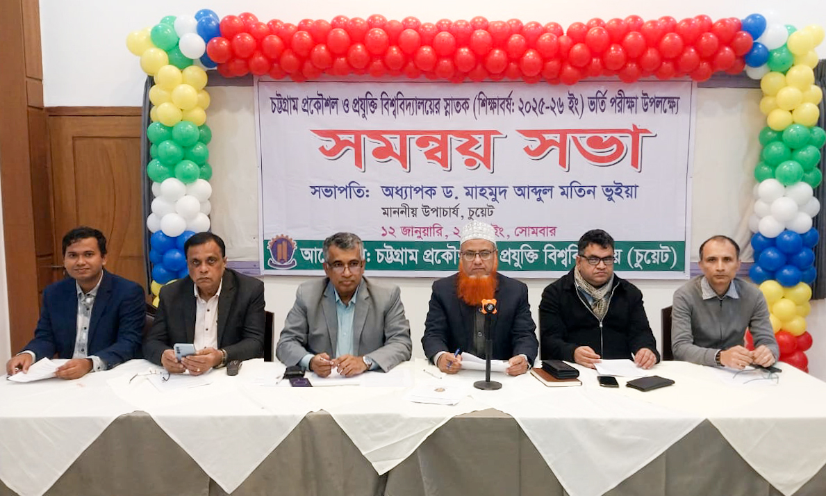 নিজস্ব প্রতিবেদক : চট্টগ্রাম প্রকৌশল ও প্রযুক্তি বিশ্ববিদ্যালয় (চুয়েট)-এর স্নাতক (শিক্ষাবর্ষ ২০২৫-২৬) ভর্তি পরীক্ষা উপলক্ষে এক সমন্বয় সভা ১২ জানুয়ারি চট্টগ্রাম মহানগরীর একটি মিলনায়তনে অনুষ্ঠিত হয়। এতে সভাপতিত্ব করেন চুয়েট এর ভাইস চ্যান্সেলর অধ্যাপক ড. মাহমুদ আব্দুল মতিন ভূইয়া। এতে বিভিন্ন সংশ্লিষ্ট সংস্থার কর্তৃপক্ষ, প্রতিষ্ঠানের প্রতিনিধিবৃন্দ উপস্থিত ছিলেন।