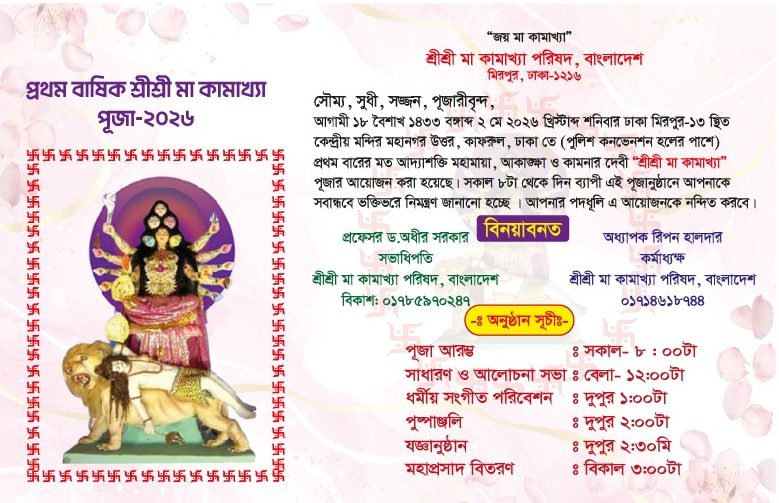 ঢাকায় আগামী ২ মে মা কামাখ্যা পূজানুষ্ঠান