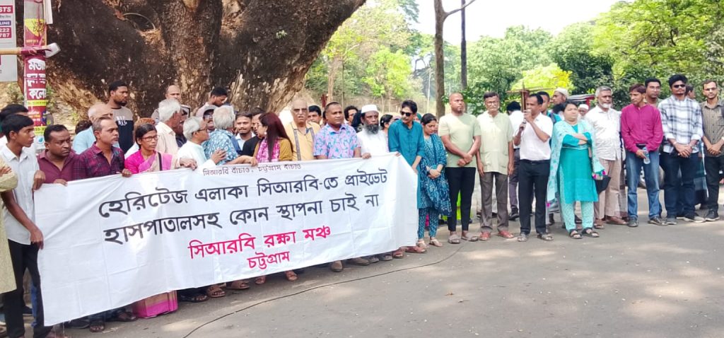 হেরিটেজ এলাকা সিআরবি-তে নতুন করে বেসরকারি হাসপাতাল নির্মাণের চক্রান্তের প্রতিবাদে ১৯ এপ্রিল সিআরবি সাত রাস্তার মোড়ে বিক্ষোভ সমাবেশ করেছে সিআরবি রক্ষা মঞ।সমাবেশে সভাপতিত্ব করেন সিআরবি রক্ষা মঞ্চের সমন্বয়ক বীর মুক্তিযোদ্ধা ডাঃ মাহফুজুর রহমান।সমাবেশে চট্টগ্রামের বিশিষ্ট নাগরিক,বিভিন্ন পেশাজীবি- সামাজিক- রাজনৈতিক-সাংস্কৃতিক-শ্রমিক ও ছাত্র সংগঠনের নেতৃবৃন্দ সংহতি জানিয়ে বক্তব্য রাখেন।